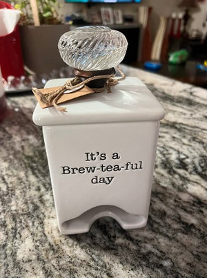 • Crafted from high-quality ceramic, this tea bag caddy is both stylish and functional.