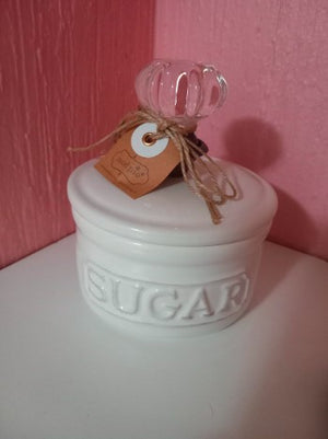 Door Knob Sugar Bowl, White 5.85H X 6.7L X 6.35W