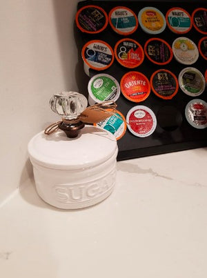 Vintage-Inspired Design: Adorned with a vintage-inspired glass doorknob handle, the sugar bowl exudes a classic charm that adds a unique touch to your tabletop decor. The handle not only serves a functional purpose but also adds a nostalgic element to this lovely set.