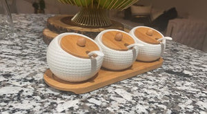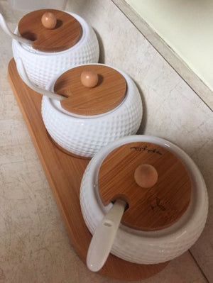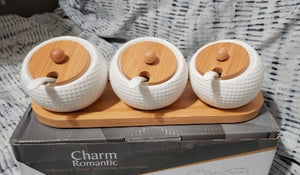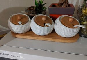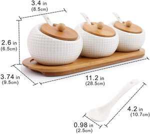 Set of 3 Porcelain Condiment Jar Spice Container with Lids, White,170 ML (5.8 OZ)